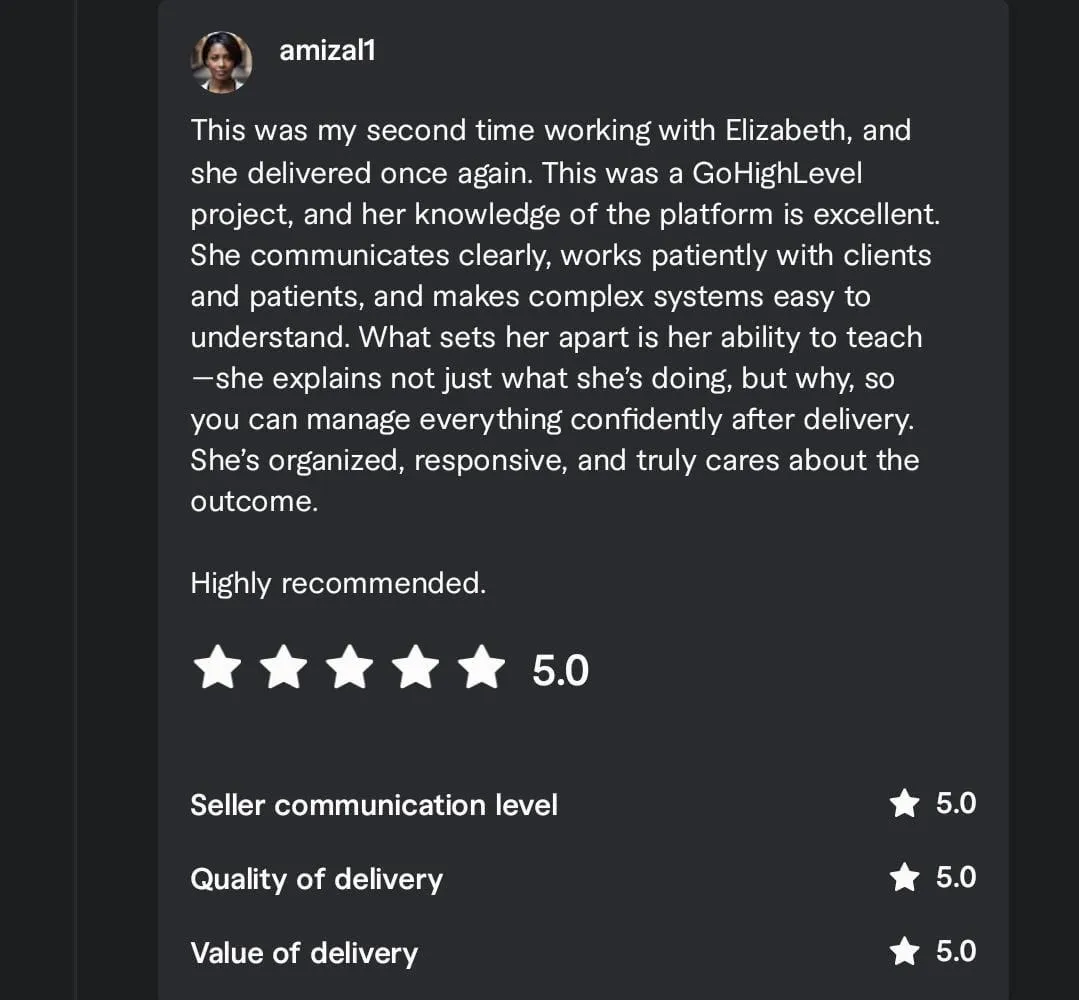 Meet Elizabeth Aduragbemi, Odeniyi, a passionate and results-driven freelancer specializing in powerful marketing platforms like Gohighlevel, Click Funnels, WIX, Squarespace, MAKE, Zapier etc. My journey into digital marketing began with a fascination for automation and the immense potential it holds for businesses of all sizes. I translate complex technical capabilities into tangible business growth. I don't just build funnels or set up automations; I craft integrated systems designed to attract leads, nurture prospects, and convert sales efficiently. My goal is to free you from the day-to-day tech complexities, allowing you to focus on what you do best: running and growing your business.
